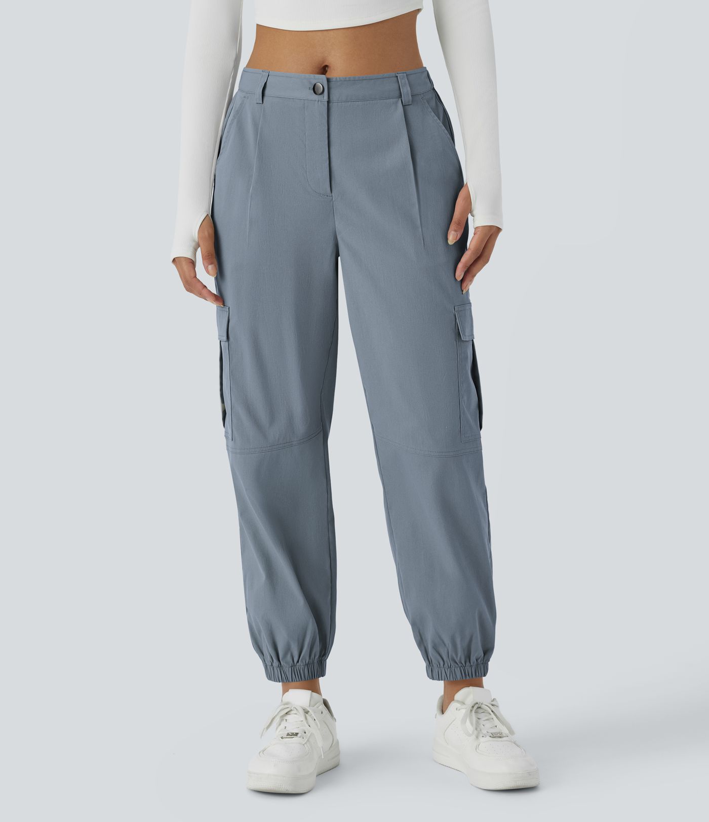 Mid Rise Button Zipper Multiple Pockets Casual Cargo Joggers