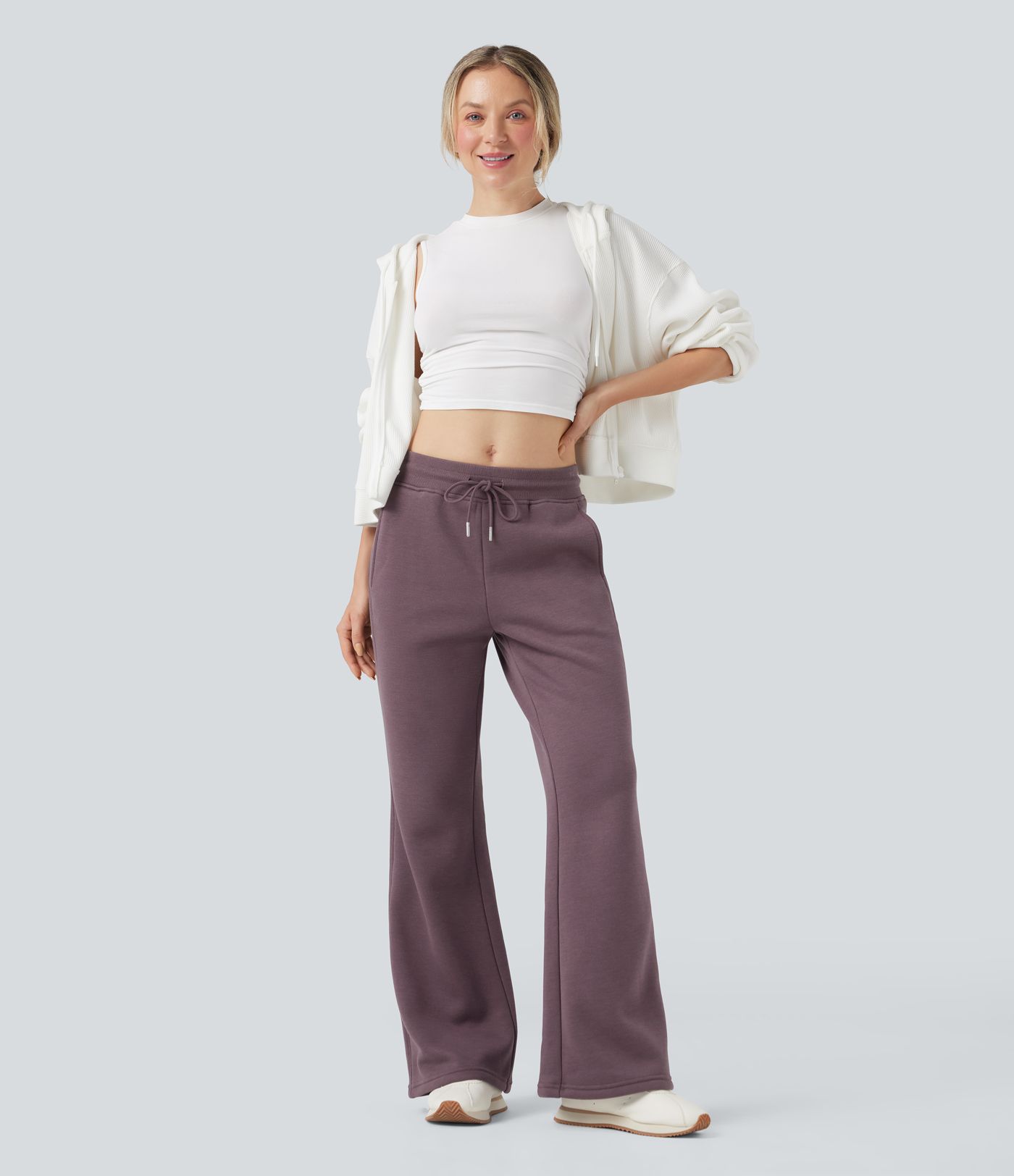 Mid Rise Drawstring Fleece Casual Flare Trackpants with Pockets