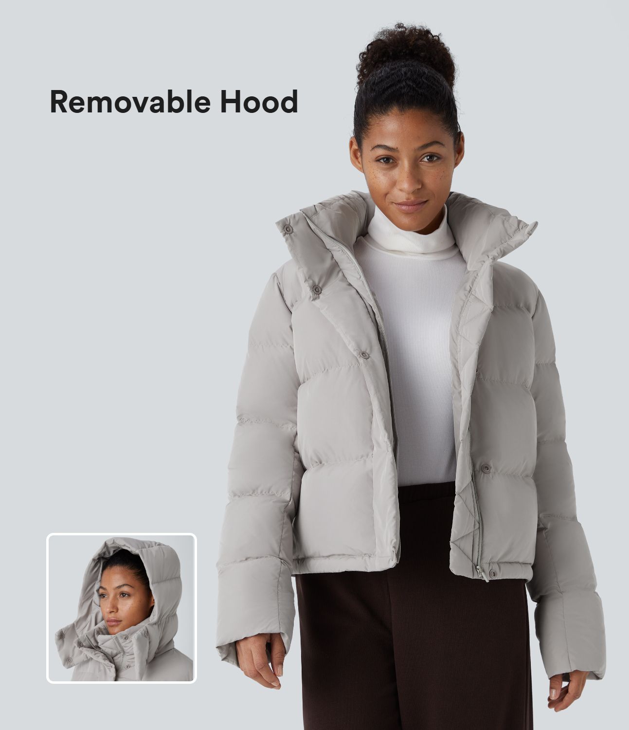 Removable Hood Long Sleeve Invisible Pocket Relaxed Casual Puffer Down Jacket
