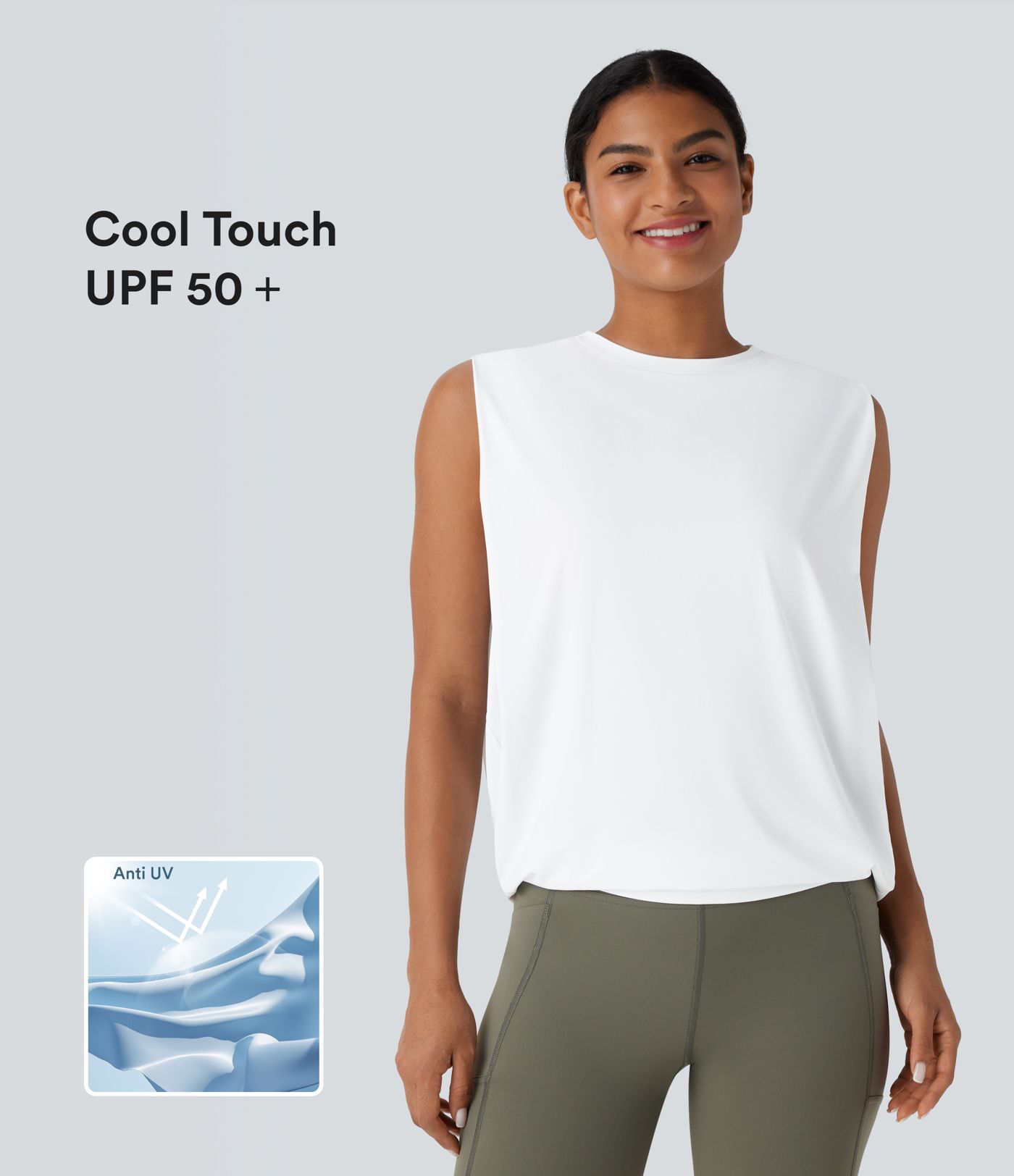 Round Neck Ruched Cool Touch Yoga Tank Top-UPF50+