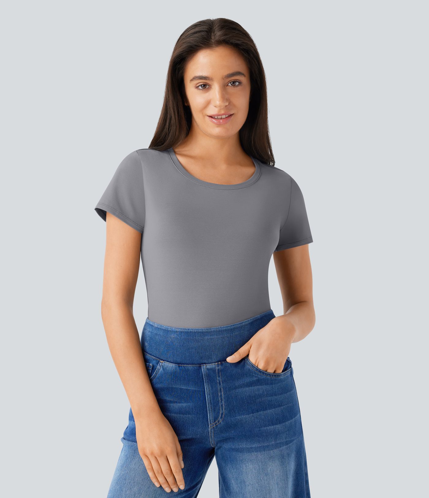 Round Neck Short Sleeve Basic Work Top