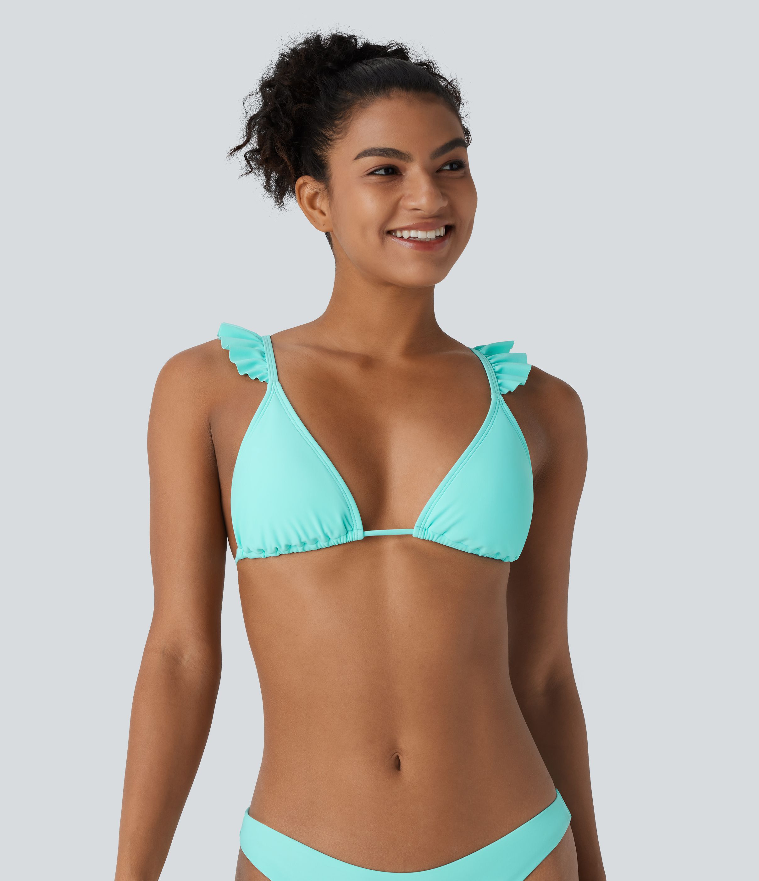 Ruffle Tie Back Triangle Bikini Top Swimsuit