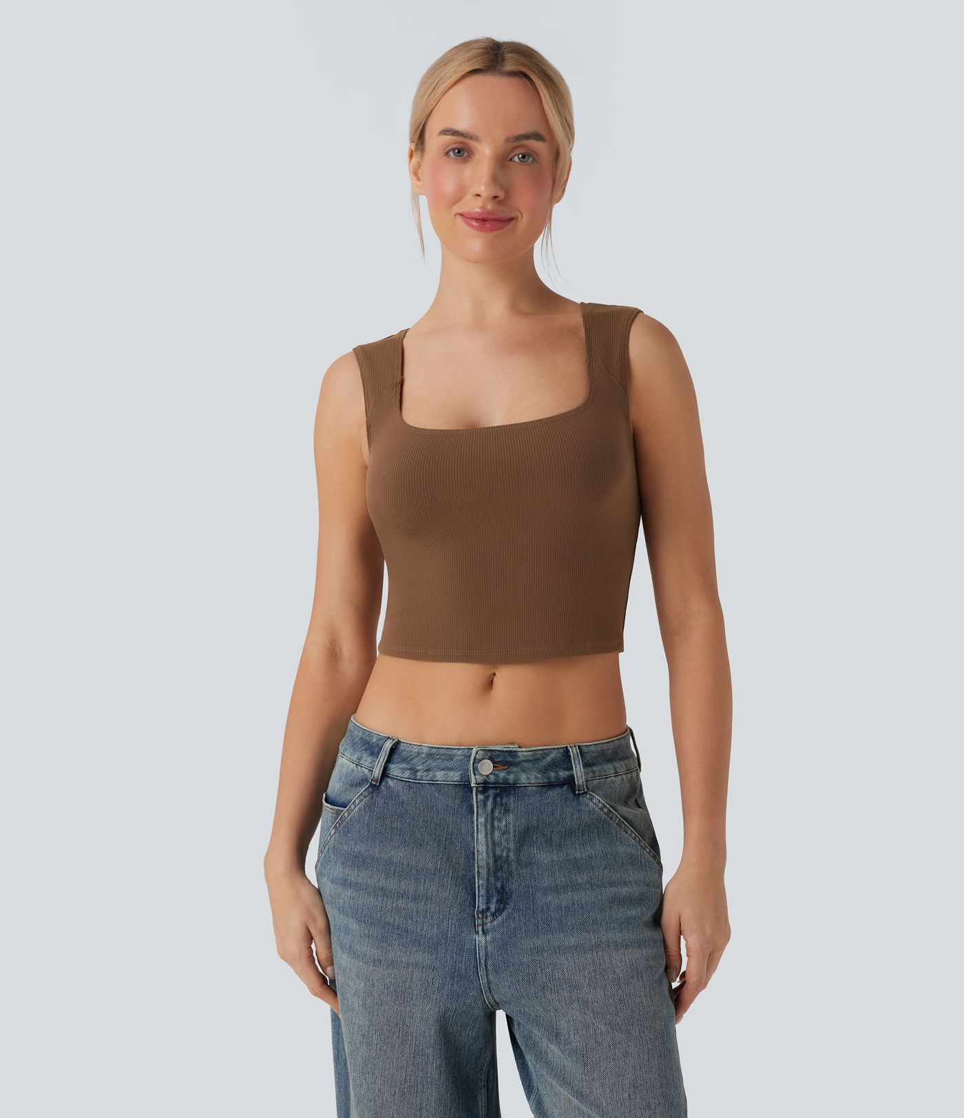 SoftlyZero™ Ribbed U Neck Cropped Casual Tank Top