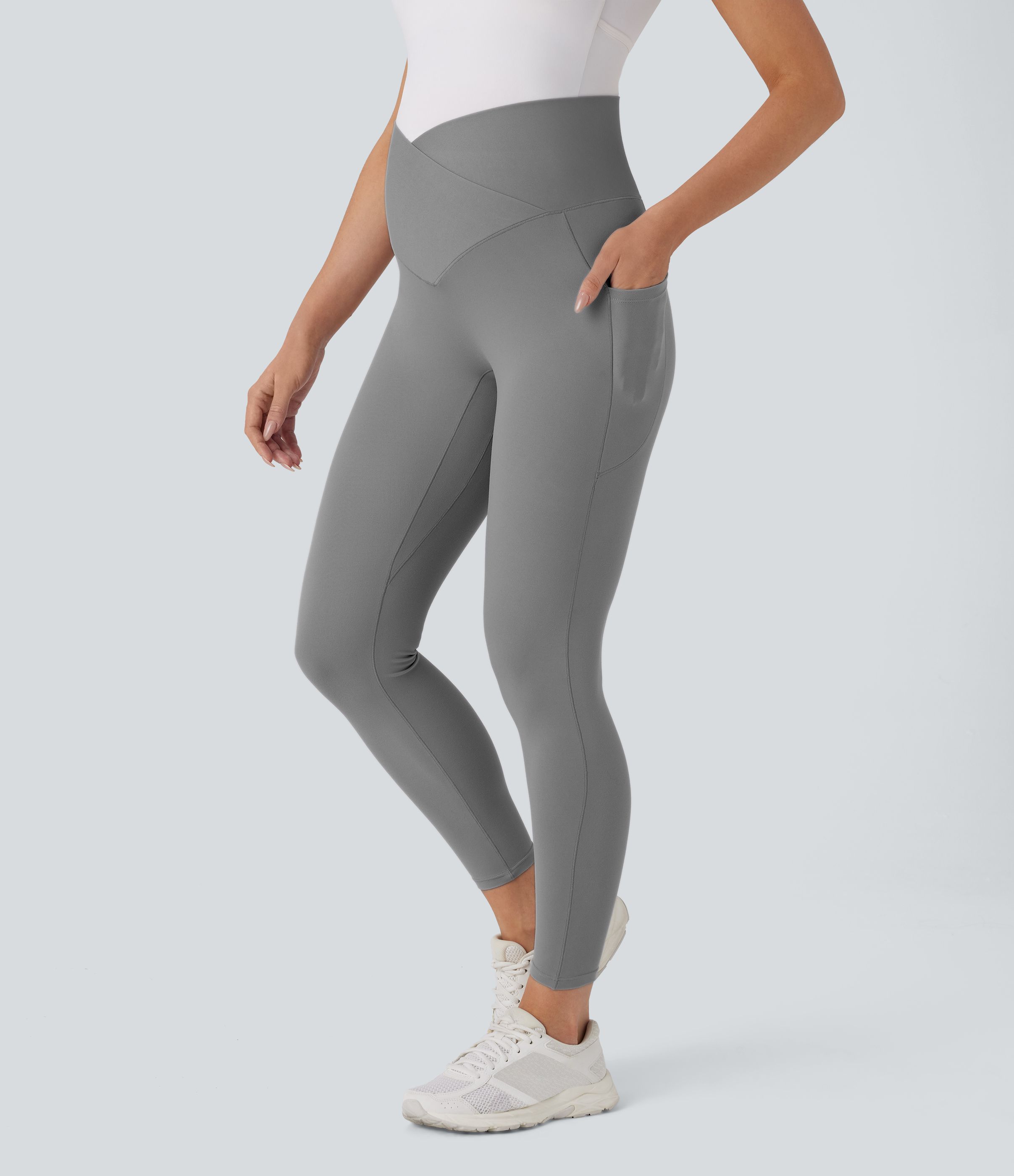 SoftlyZero™ Super High Waisted Crossover Pocket 7/8 Yoga Maternity Leggings-UPF50+