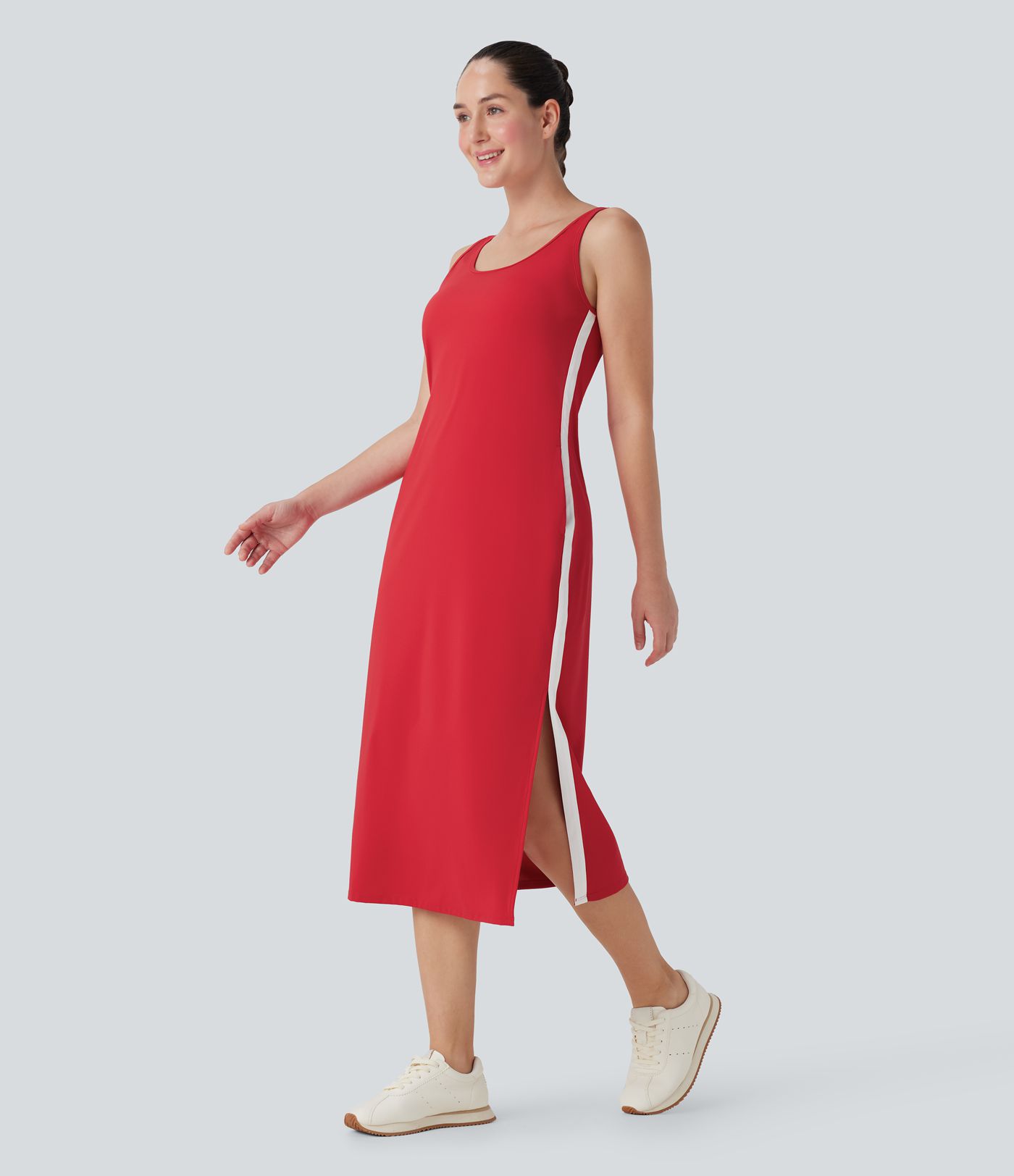 SoftlyZero™ Airy Color Block Hem Cool Touch Workout Active Tank Dress with Pockets-UPF50+