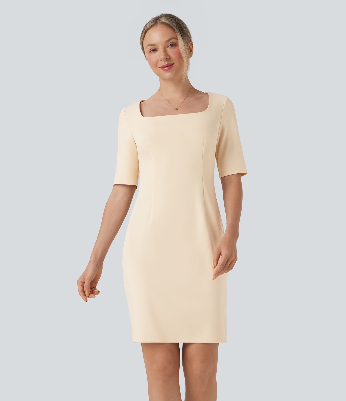 SculptKnit Square Neck Half Sleeve Slim Pencil Work Dress
