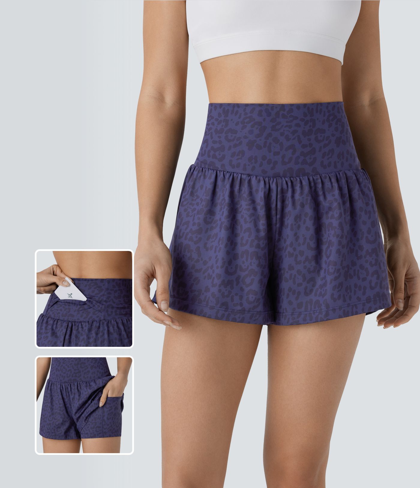 Super High Waisted Pocket & Pocket 2-in-1 Leopard Print Yoga Shorts