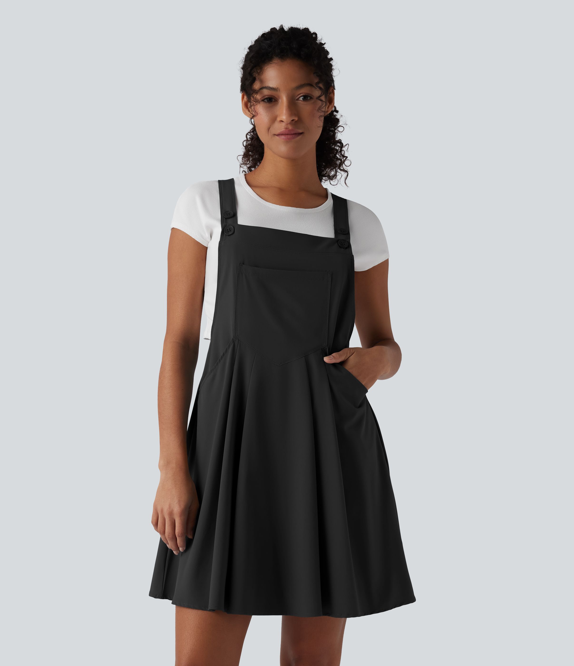 Breezeful™ Adjustable Straps Flowy Quick Dry Mini Casual Pinafore Dress with Pockets