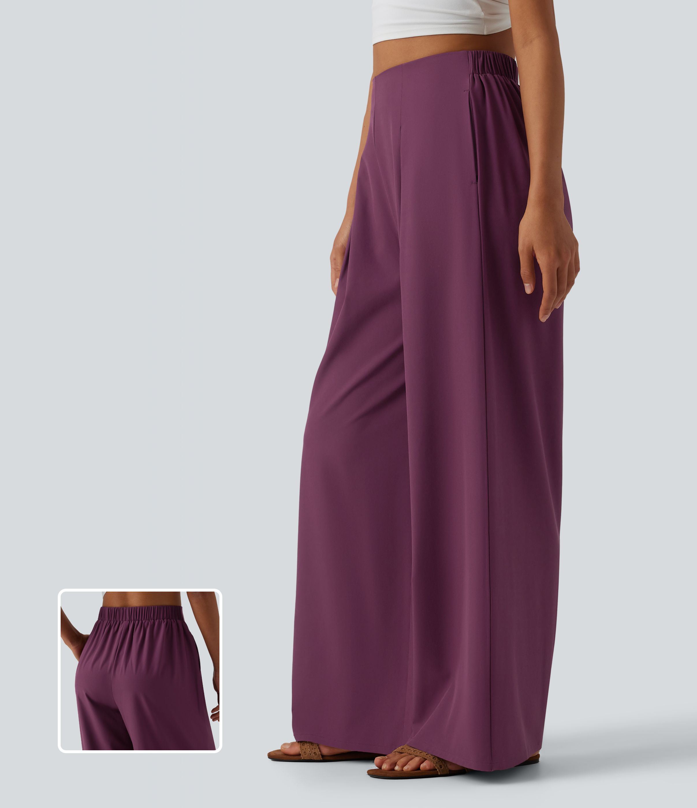 Breezeful™ High Waisted Pleated Quick Dry Resort Flowy Baggy Pants with Pockets