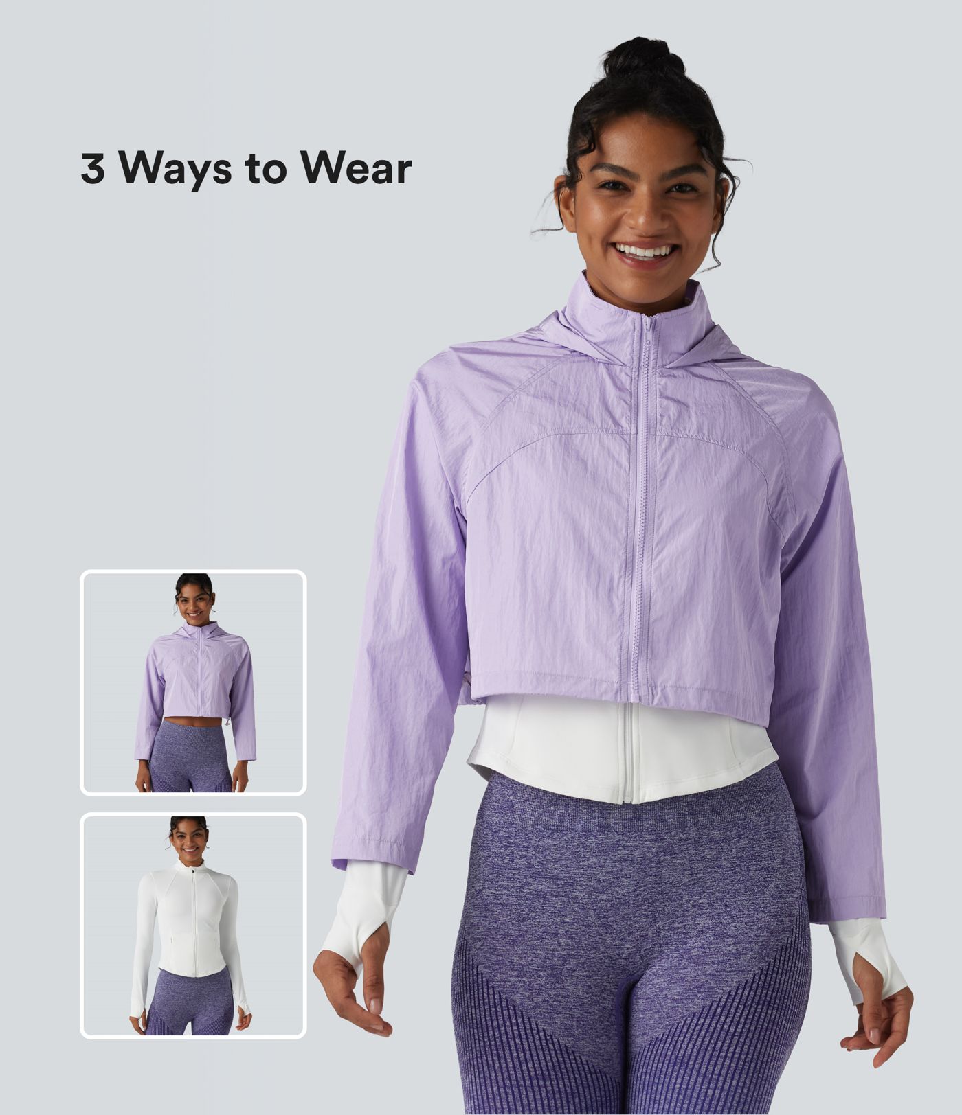 Durable Water Repellent Hooded Thumb Holes Curved Hem Running 3-in-1 Jacket with Pockets