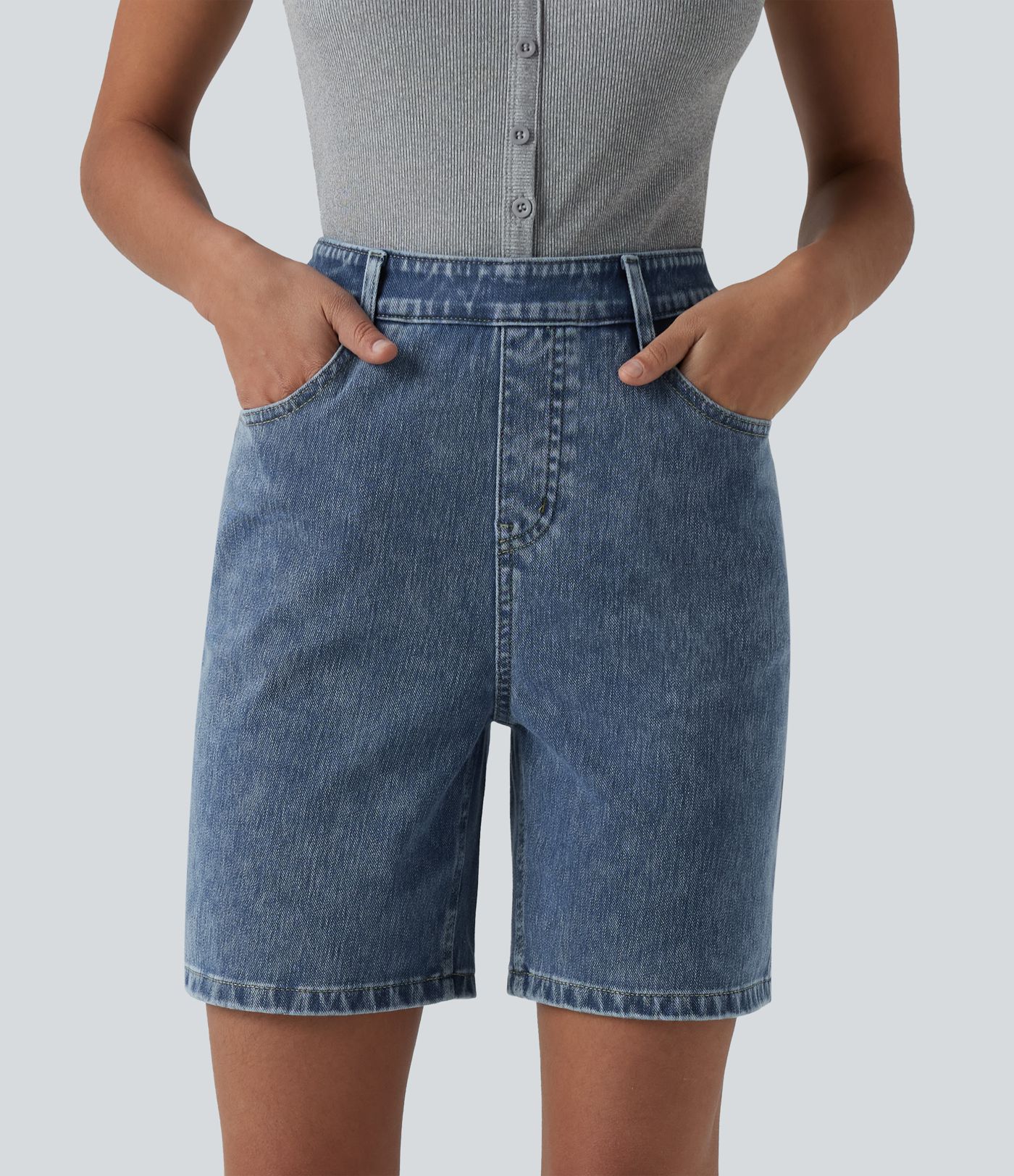 Halara Flex™ shorts casual de denim de tiro alto 7'' con bolsillos