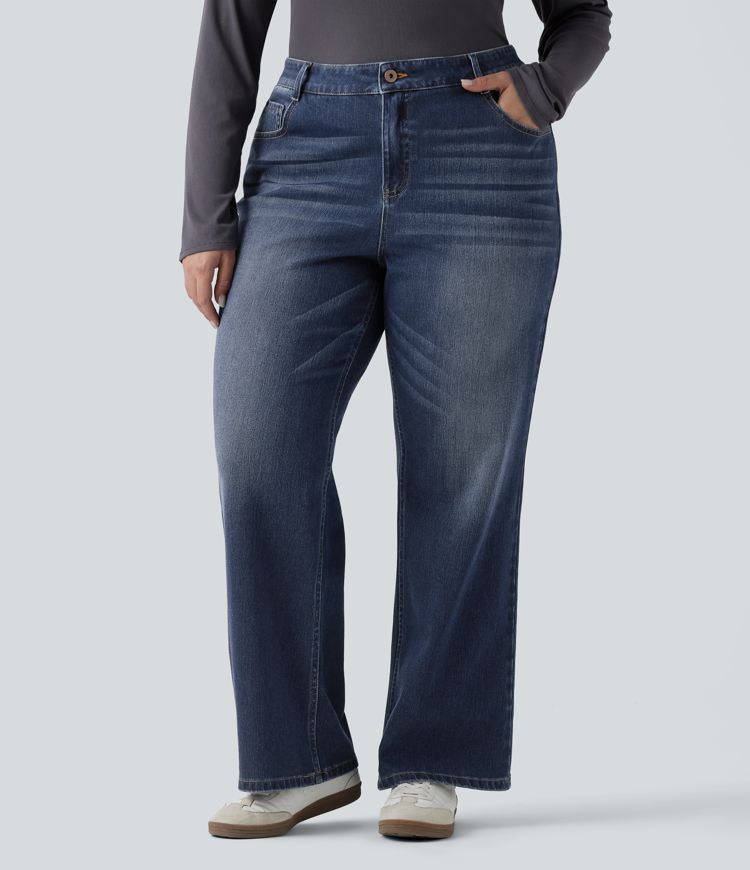 Halara Flex™ Low Rise Washed Casual Bootcut Plus Size Jeans with Pockets