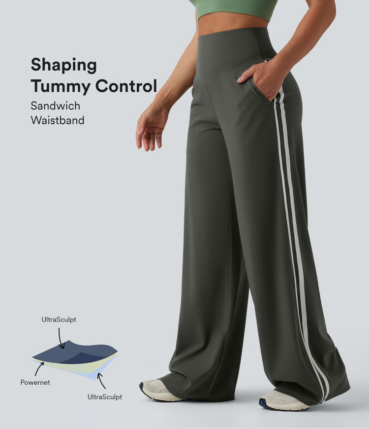 Halara UltraSculpt™ High Waisted Tummy Control Color Block Stripes Yoga Baggy Pants with Pockets