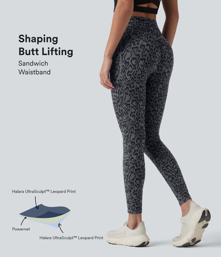 Halara UltraSculpt™ Leopard Print High Waisted Scrunch Butt Lifting Tummy Control Training Leggings with Pockets