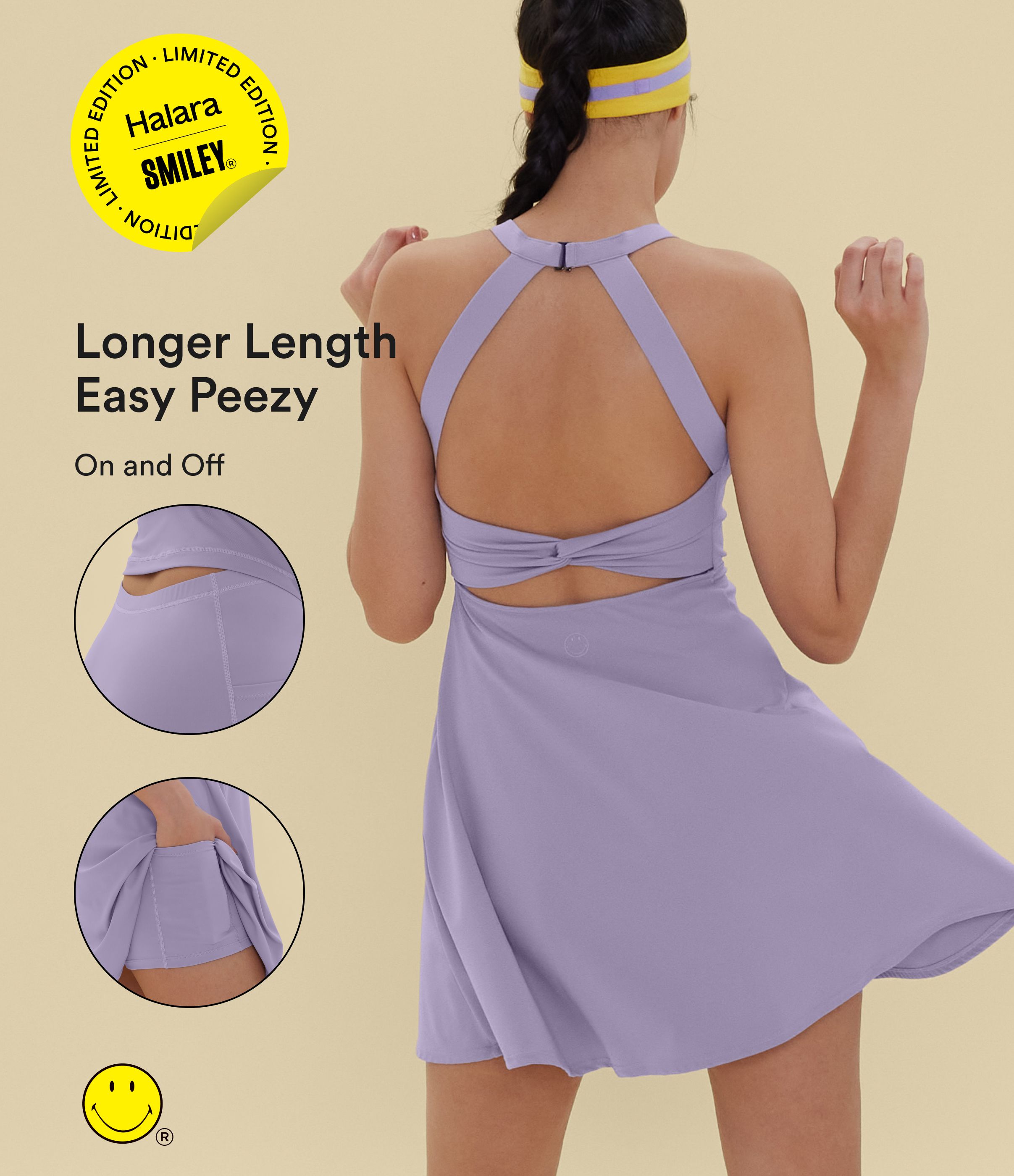 Halara X Smiley SoftlyZero™ Airy Backless Twisted Flare Dance Active Dress with Pockets-Longer Length-Easy Peezy Edition A-C Cups