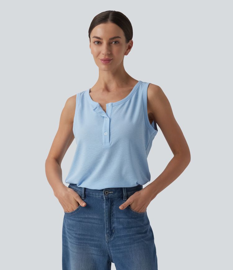 Henley Neck Casual Tank Top