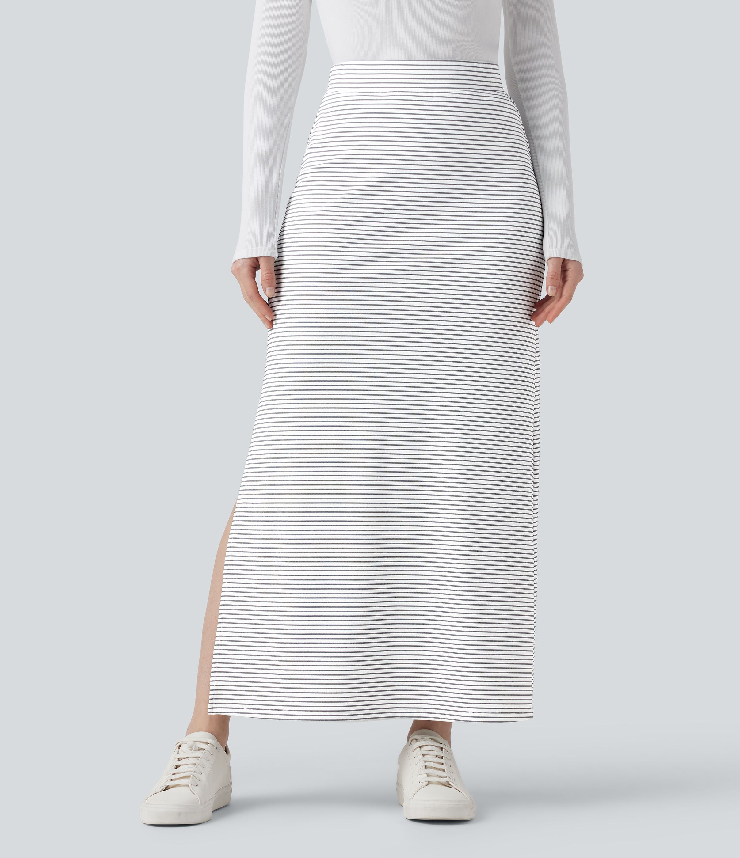 High Waisted A-Line Stripe Maxi Casual Skirt