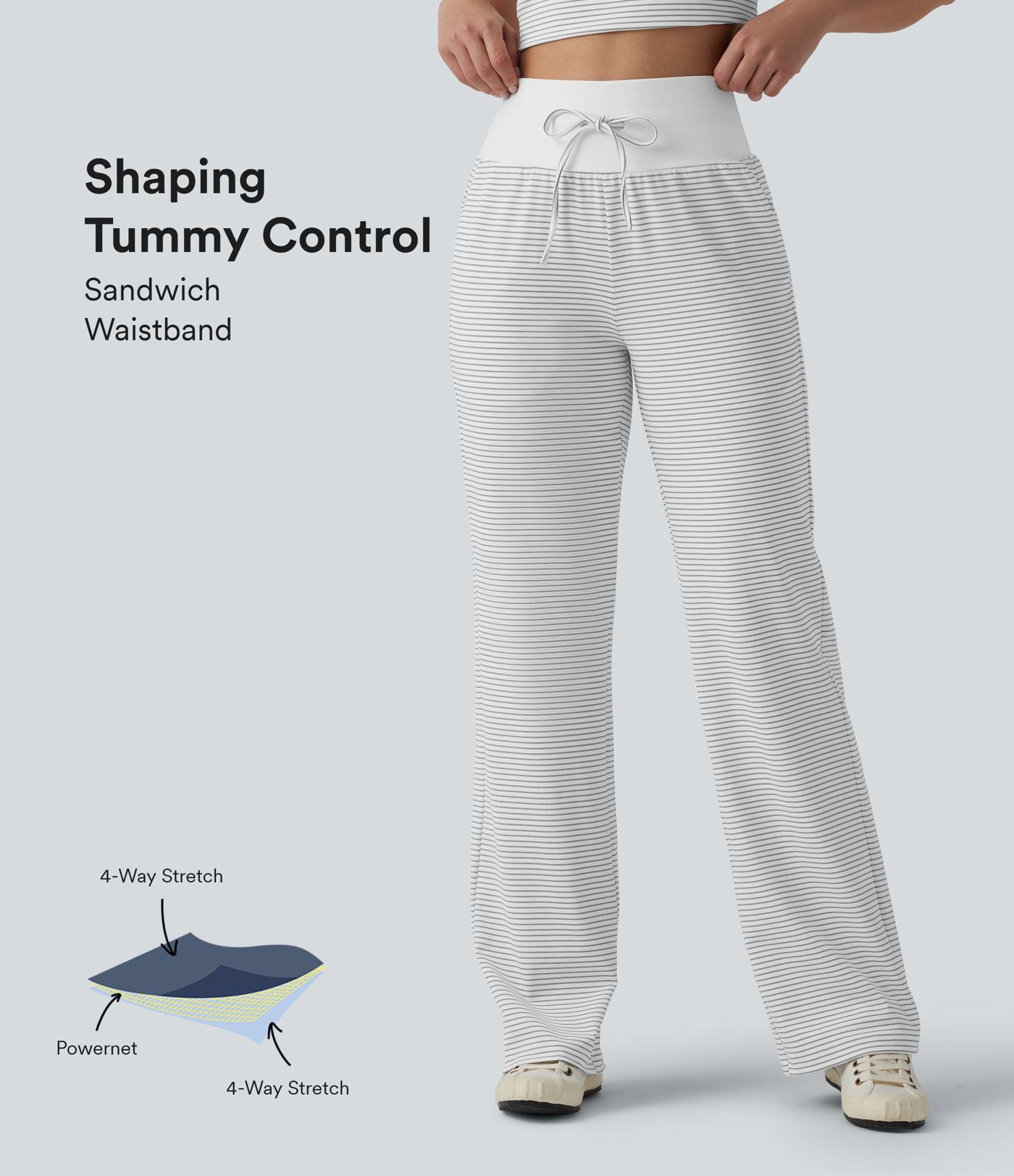High Waisted Tummy Control Drawstring Straight Leg Stripe Casual Pants with Pockets
