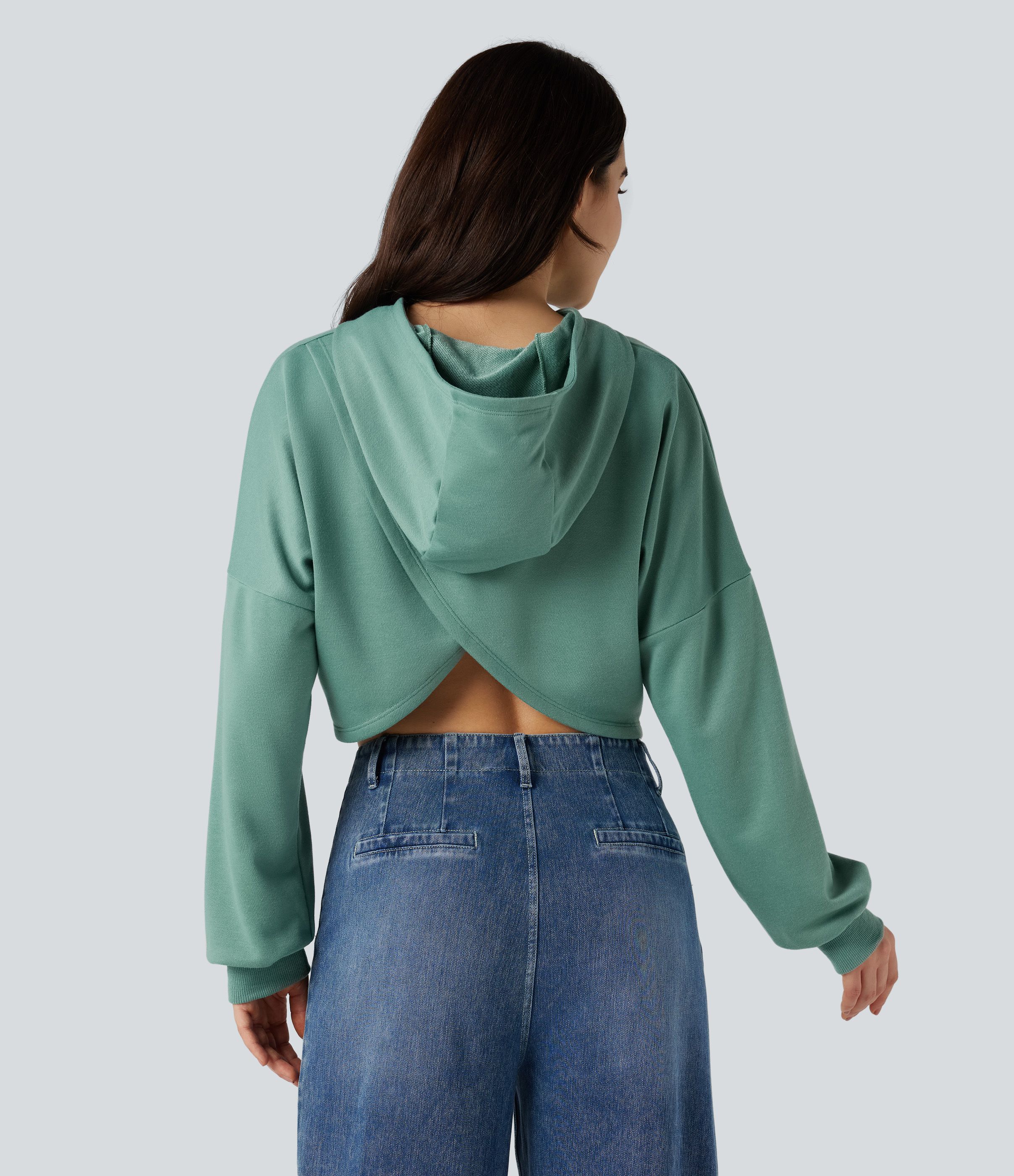 Hooded Crossover Back Cropped Casual Sweatshirt