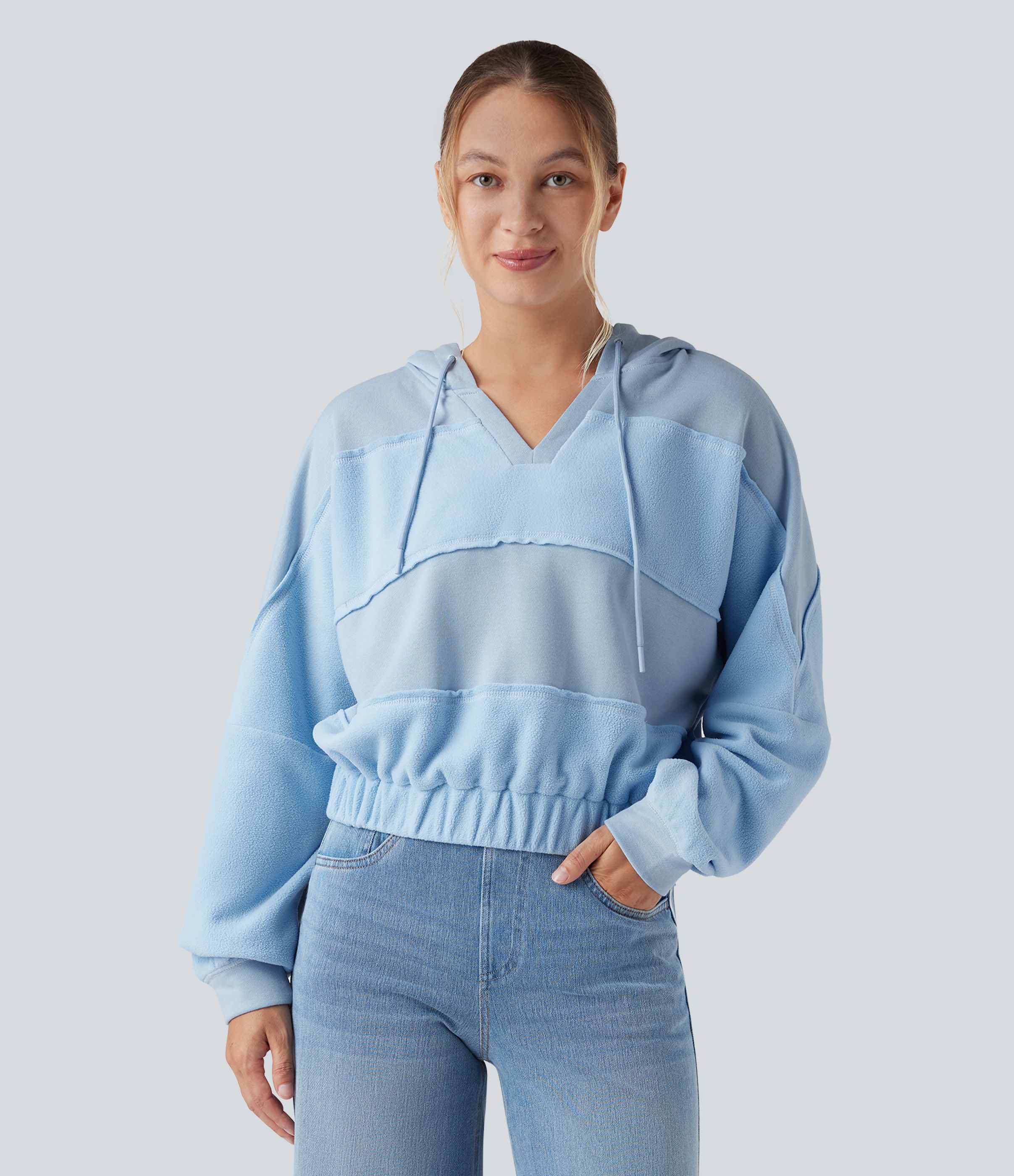 Hooded Drawstring Long Sleeve Patchwork Casual Sports Sweatshirt