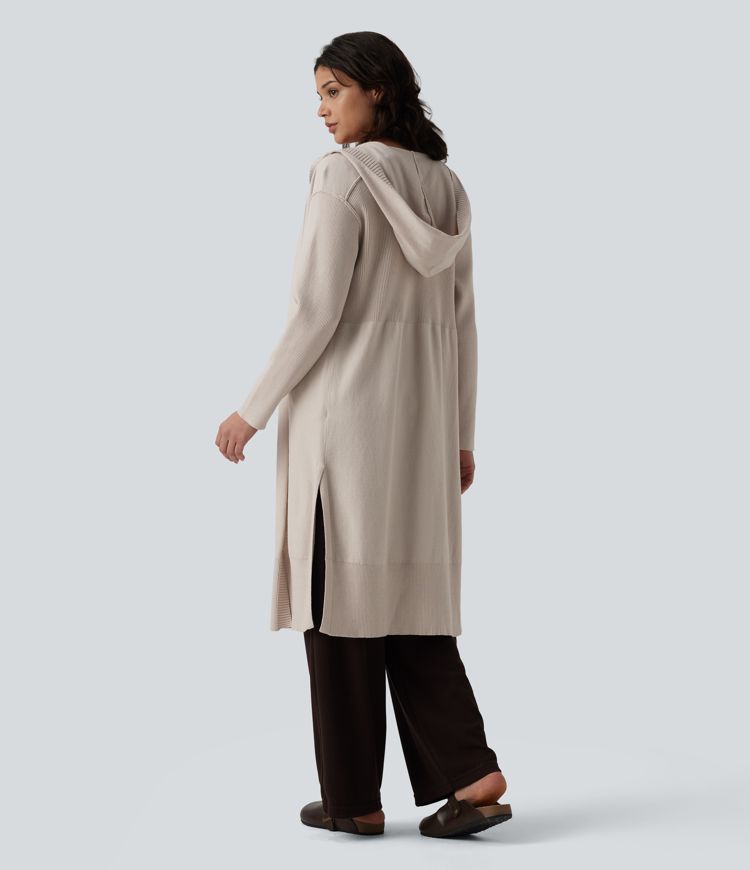 Hooded Long Sleeve Open Front Longline Casual Cardigan