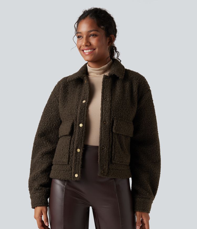 Long Sleeve Casual Sherpa Jacket with Pockets