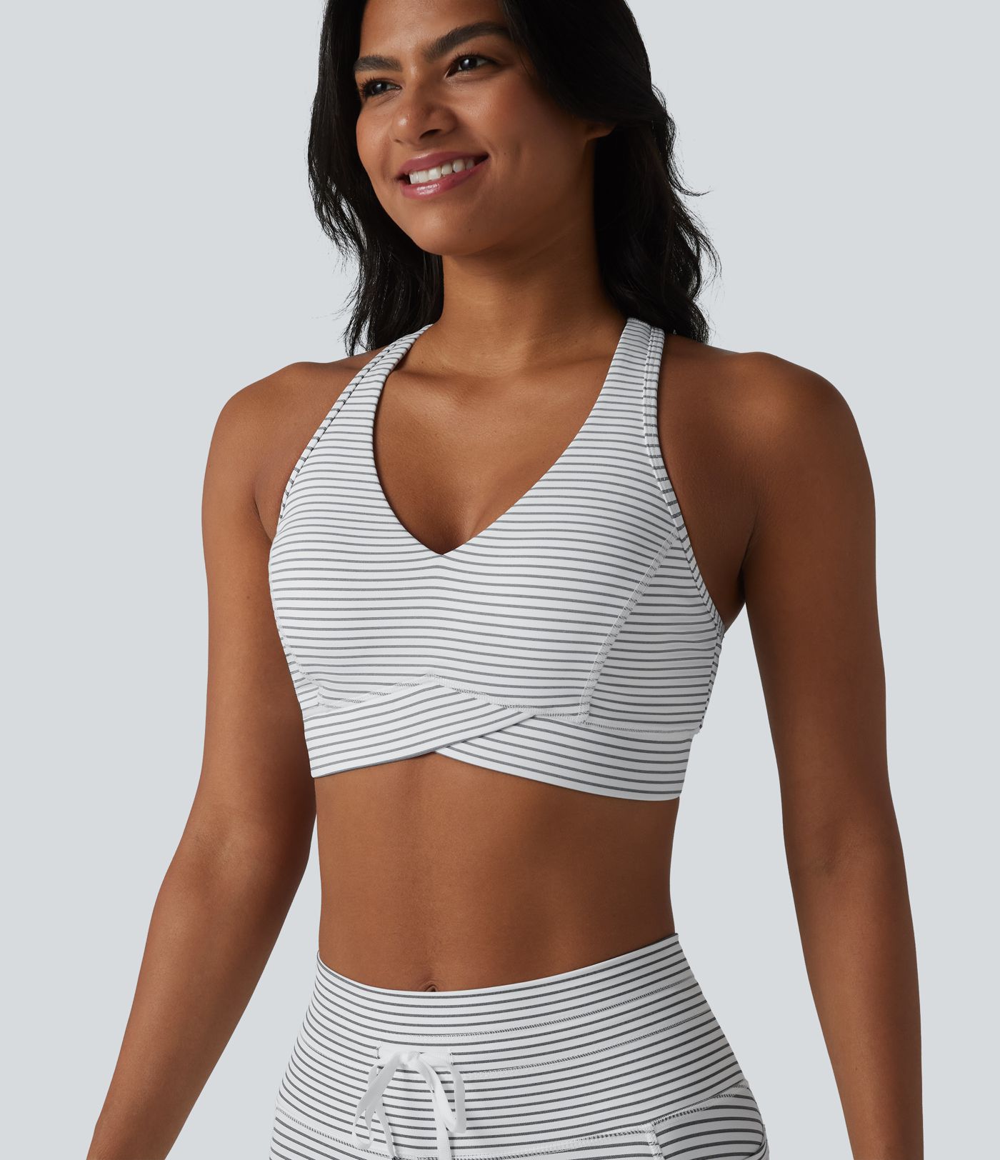 Medium Support V Neck Built-in Bra Racerback Stripe Training Sports Bra