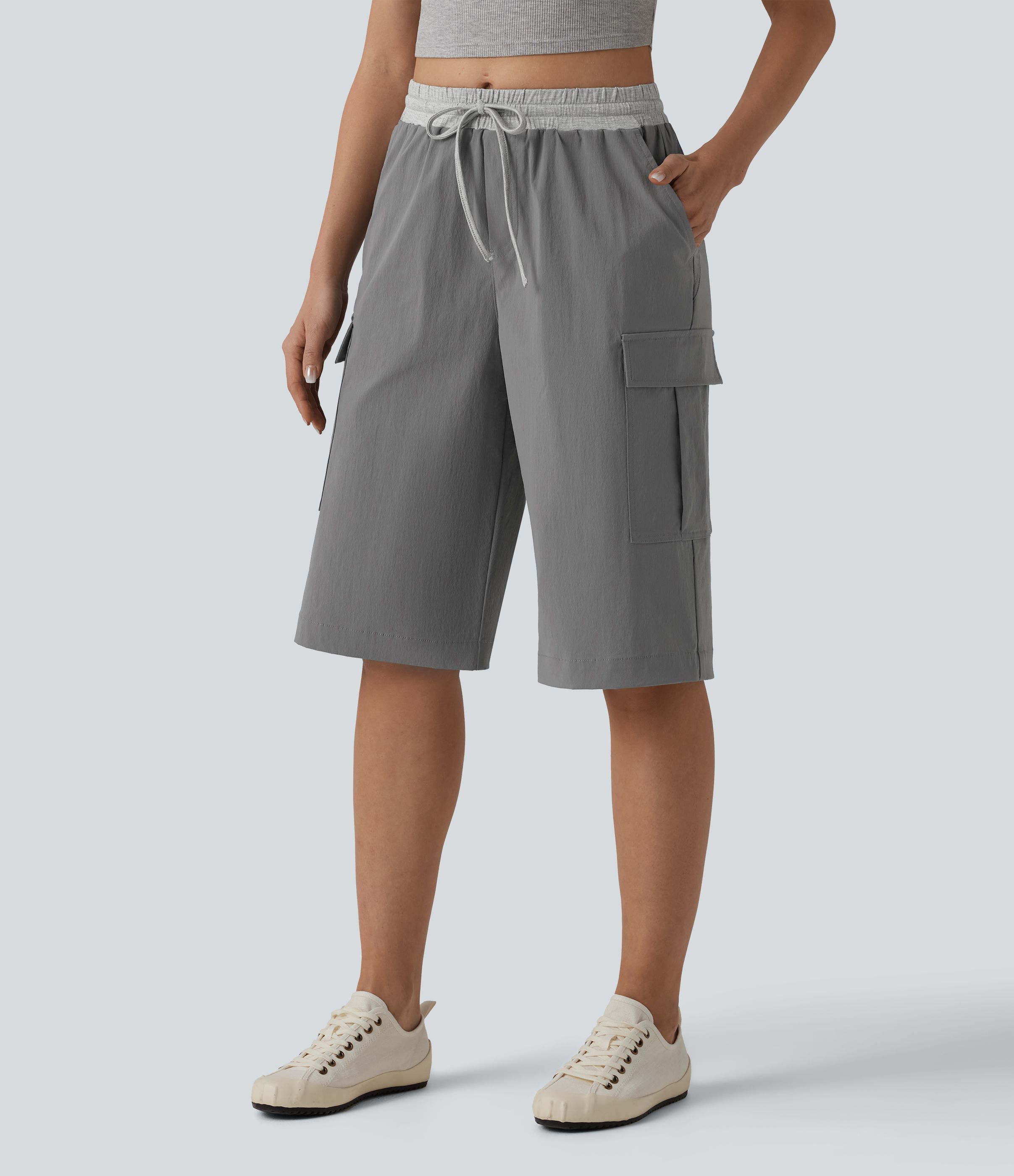 Mid Rise Drawstring Color Block Casual Pedal Pusher Pants with Pockets