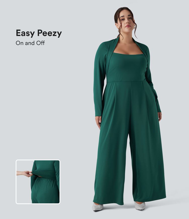 Plus Size Long Sleeve Wide Leg Jumpsuit with Pockets-Easy Peezy Edition