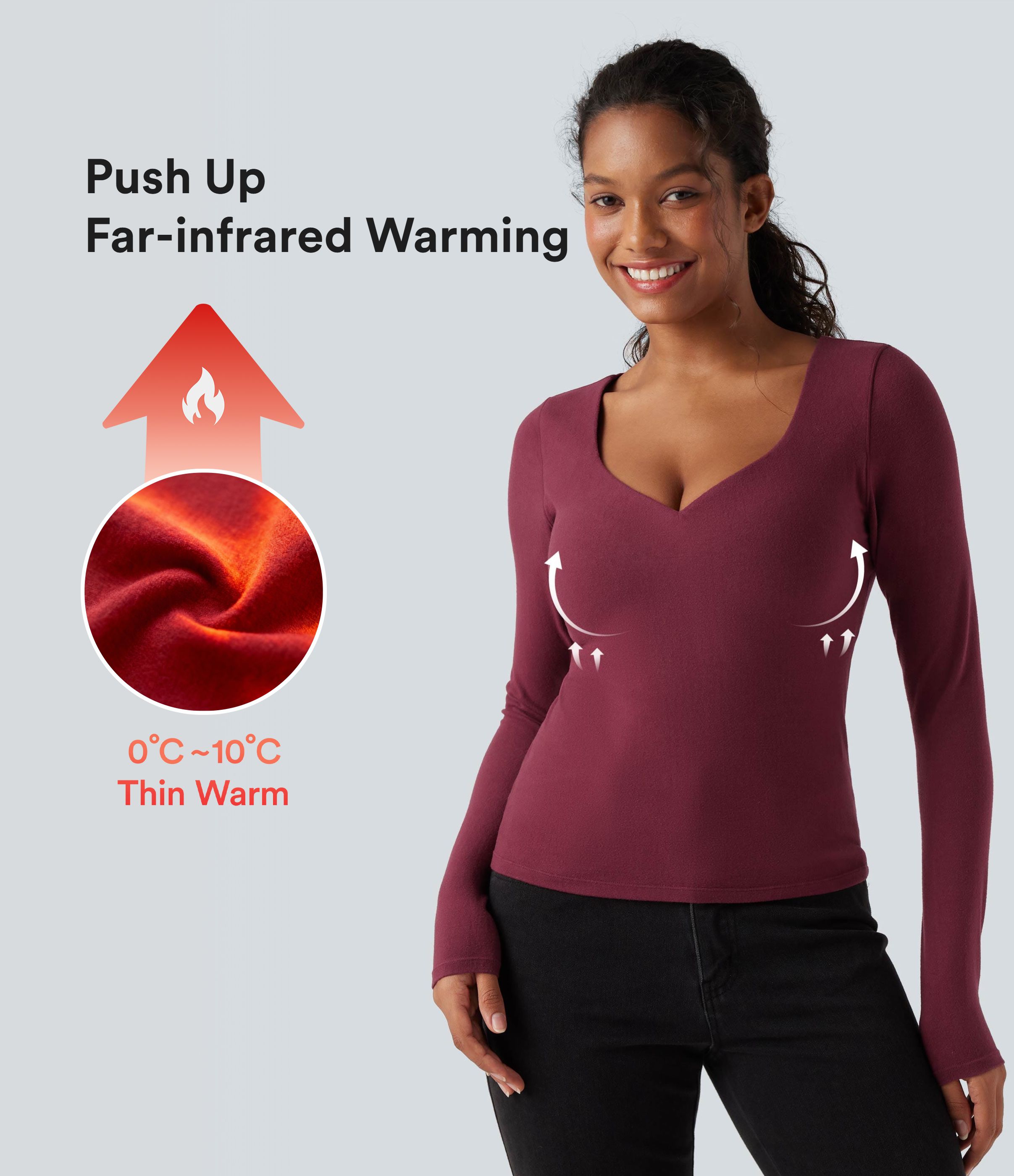 Halara HeatCore Push-Up Long Sleeve Casual Warming Top D/DD Cup