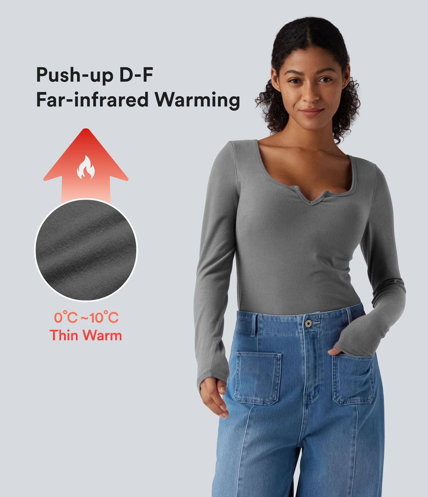 Halara HeatCore Push-Up Notched Long Sleeve Casual Warming T-Shirt D-F Cups