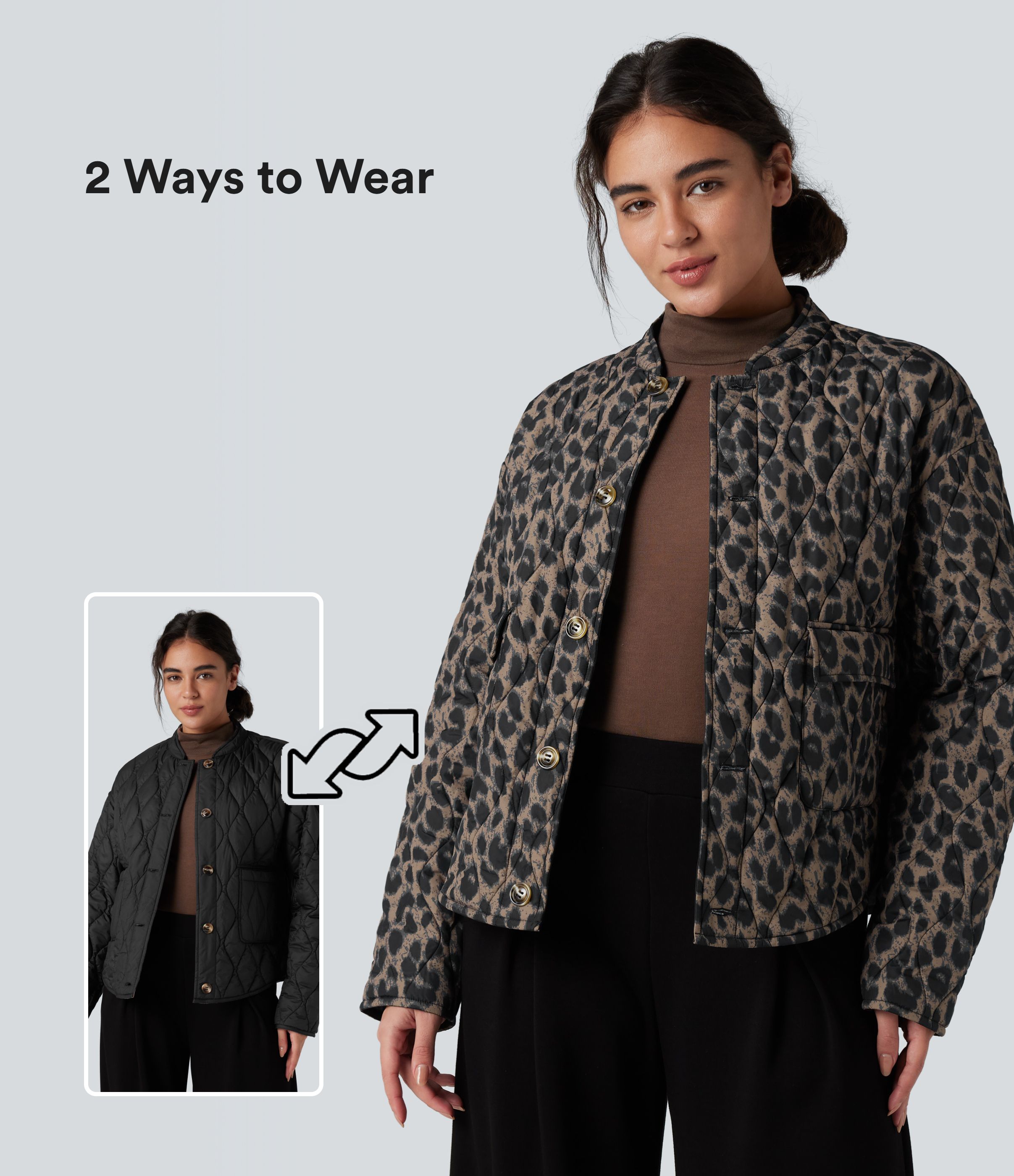 Reversible Durable Water Repellent Curved Hem Casual Padded Jacket with Pockets