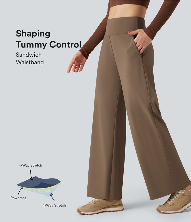 High Waisted Tummy Control Wide Leg Yoga Pants with Pockets