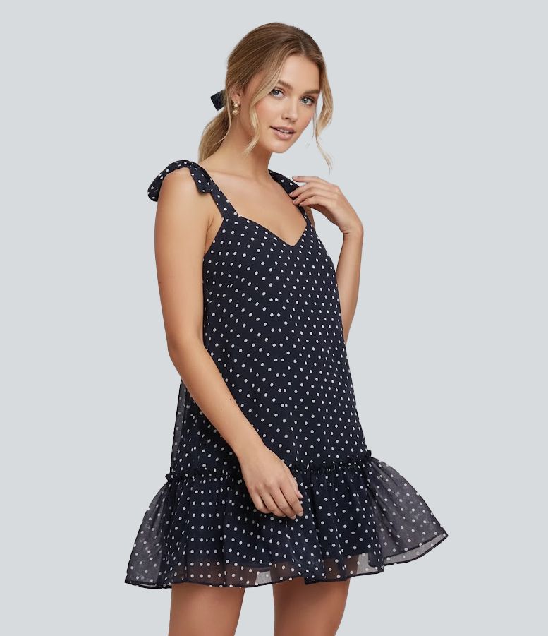 Tie Side Polka Dot Ruffle Hem Micro Mini Casual Dress