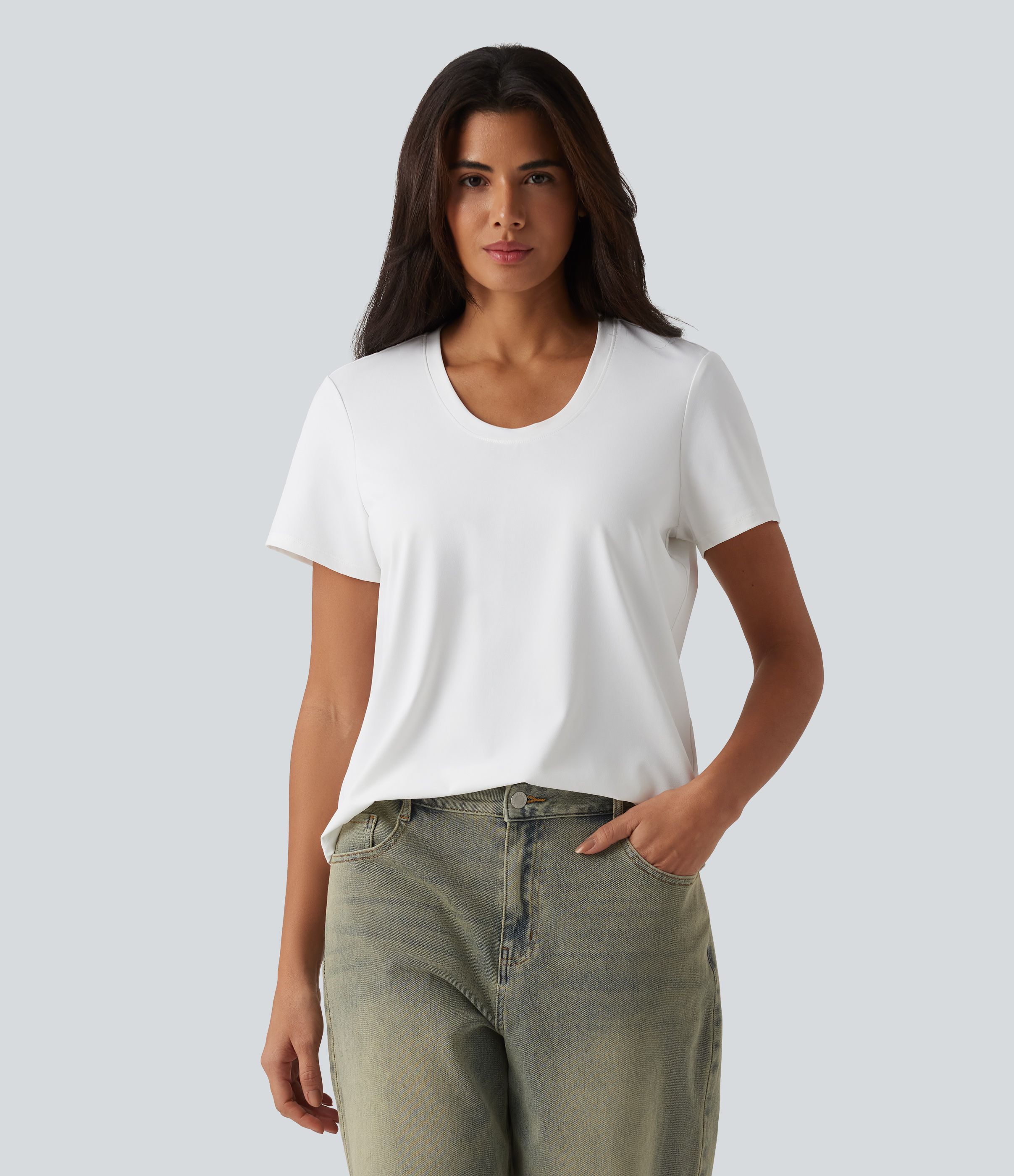 U Neck Short Sleeve Casual T-Shirt