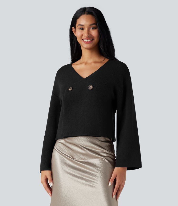 V-neck Reglan Long Sleeve Relaxed Fit Work Cardigan