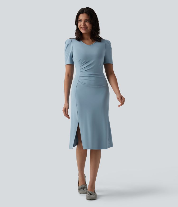 V Neck Short Sleeve Midi Casual Dress